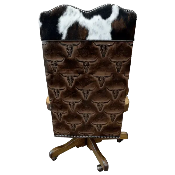 At the center of the chair’s backrest, a sculpted bull head bed inspired motif is embossed into the leather, evoking heritage and strength. This detail brings a Western statement to your workspace while remaining subtle enough to blend with more refined décor styles. The wide backrest provides full back support and is shaped to encourage healthy sitting posture throughout your workday.