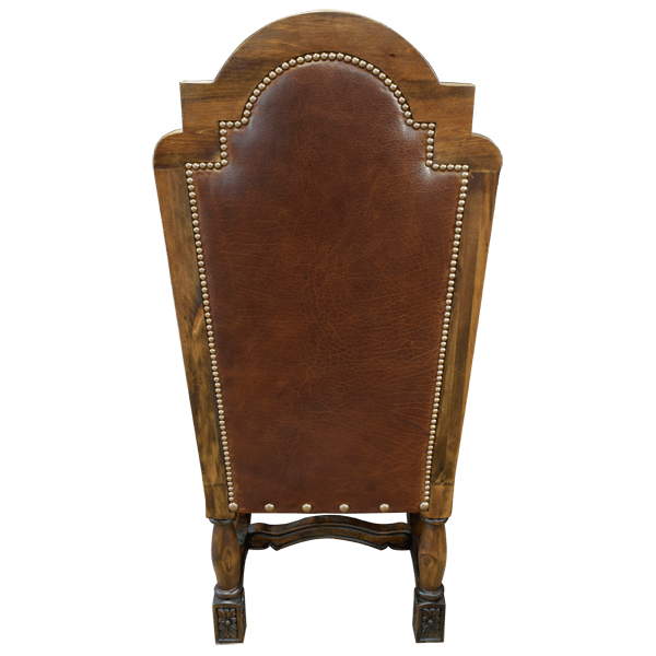 The precision-tacked upholstery enhances the chair’s visual appeal, with decorative gilt nails securing the leather to the solid wood frame. These gilt nails are not merely functional; they serve as a decorative element that elevates the overall design. The thoughtful placement of these embellishments adds a touch of elegance and reflects the craftsmanship that goes into each chair.