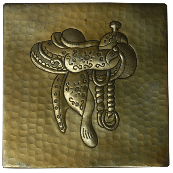 Expertly crafted from durable, hand-hammered copper, this tile highlights intricate details of the saddle, showcasing the artistry and craftsmanship of the design. Its patina finish adds depth and character, enhancing the overall allure of the piece. Perfect as a decorative wall accent, floor tile, or even as part of a backsplash, this tile is both versatile and striking.