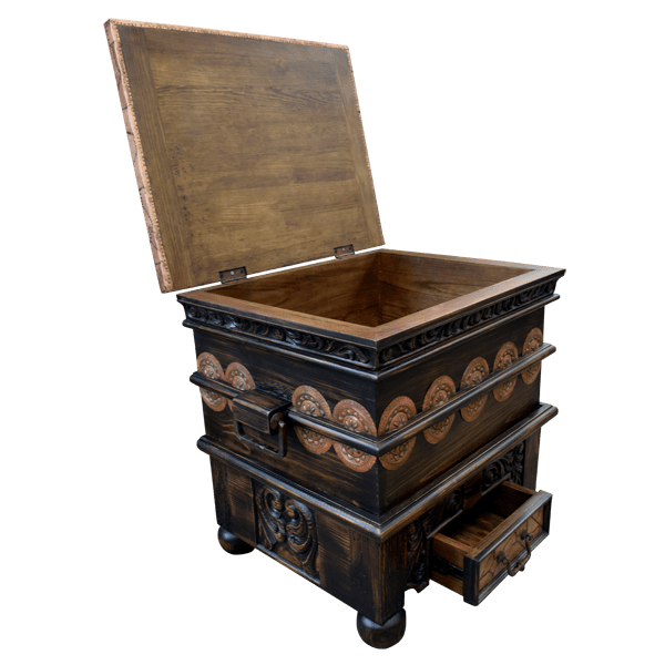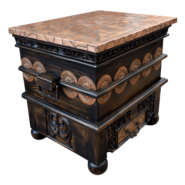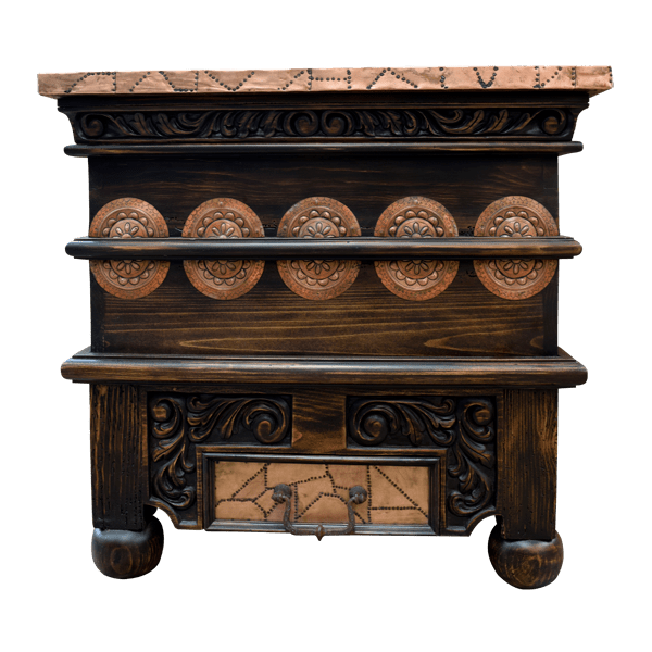 The Santa Klara Trunk features intricate carvings that adorn its surface, showcasing the exceptional artistry that goes into each piece. The dark finish adds depth and richness, providing a vintage flair that enhances its classic appeal. Every detail is thoughtfully executed, from the elegant curves to the ornate patterns that grace its surface, creating a captivating visual experience.
