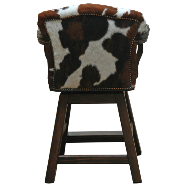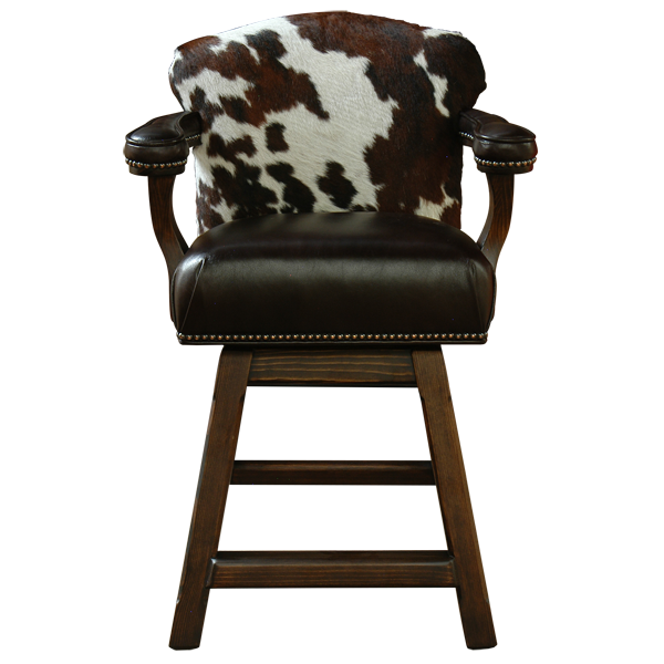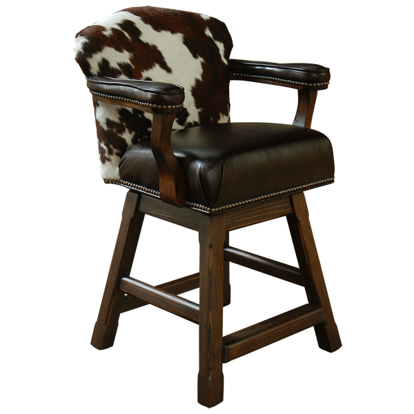 The Santa Rita Barstool features a seat and armrest upholstered in luxurious full-grain leather, known for its rich texture and durability. This high-quality material not only enhances comfort but also adds an elegant touch to your space. The sides of the seat back are adorned with dramatic white patterned real cowhide, creating a striking contrast that makes this bar stool a true statement piece.